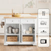 Tässä pyörällisessä keittiösaarekkeessa on 2 ulosvedettävää laatikkoa ja 2 kaappia, joissa on kaksinkertaiset ovet ja säädettävät hyllyt. Ne tarjoavat joustavia säilytysratkaisuja keittiöösi. Pitkät eurooppalaistyyliset vetimet mahdollistavat helpon pääsyn myös seisten ja lisäävät sekä käytännöllisyyttä että tyyliä.