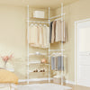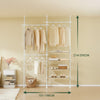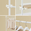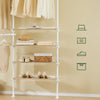 [MONIKÄYTTÖINEN TELESKOOPPIJÄRJESTELMÄ] Kolme pystysuoraa teleskooppipylvästä, kolme säädettävää vaatetankoa ja neljä hyllyä mahdollistavat avoimen vaatekaapin / räätälöidyn vaatetelineen kokoamisen makuuhuoneeseen, käytävään tai pukeutumishuoneeseen – ilman pysyvää porausta.